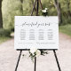 Minimalist Wedding Seating Chart Please Find Your Seating Chart for 40 guests. An elegant design in black and white or any background colour you choose. Just click the customise further link, shown under the text personalisation area on the right, and choose your custom colour background. This sign poster template makes it fast and easy to create stunning additions to your wedding décor. Signs can be decreased, there are many sizes to choose from, as well as options for custom framing and matting.