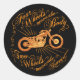 "Four wheels move the body, two wheels move the soul," in orange script lettering with swirly flourishes, around a heavenly machine. T-shirts, sweats, cards, novelty gift swag.