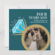 Invite your friends and family to a special fourth wedding anniversary party or dinner celebration with this blue topaz, and white sparkle, graphic eternity ring, two photos of then, and now invitation. Personalised with your own photos of your couple's wedding day and a current photo on the reverse, then add your own celebration words, party date, and venue. Other matching items and anniversary years are available. Original ring graphic art and design by www.mylittleeden.com on Zazzle.