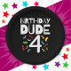 This Birthday Dude 4 design is perfect for a 4th birthday party celebration for boys turning four years old. Features colourful kids birthday party graphic w/ Birthday Dude 4 design that your little dude will LOVE!