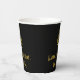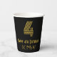 This 1920s-1930s style inspired and vintage look birthday-themed paper cup design features a large art deco inspired style number “4”, in addition to the birthday greeting message “Happy 4th Birthday,” and a personalised name. The background is coloured black. Paper cups like this might be used at a birthday party for somebody who is celebrating their 4th birthday. [~Z0000546]