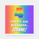 This joyful and vibrant birthday paper napkin design features a large number “4” with a colourful rainbow spectrum inspired gradient pattern, along with the message “HAPPY 4th BIRTHDAY,”, and a personalised recipient name. The background also features a cheerful multicolored rainbow spectrum inspired gradient pattern. Paper napkins like this might be used when celebrating somebody’s 4th birthday. [~Z0000573]