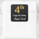 This luxurious, stylish, and elegant birthday themed square sticker design features a large ordinal number “4th” having an imitation/faux gold-like look, plus the birthday greeting message “Happy 4th Birthday,” and a custom name in a script-style font. It also has a black-coloured background. Sophisticated birthday themed stickers like this could be used when wrapping a gift or present being given to celebrate somebody’s 4th birthday, or perhaps might be given out to the attendees at a birthday celebration. [~Z0000517]