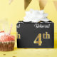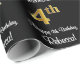 This stylish, elegant, and sophisticated birthday-themed wrapping paper design features a large ordinal number “4th” having a faux/imitation gold-inspired appearance, in addition to the birthday greeting message “Happy 4th Birthday,” and an editable recipient name in a script-style font. It also has a black-coloured background. Elegant wrapping paper like this might be used when giving a gift or present in honour of somebody’s fourth birthday. [~Z0000515]