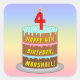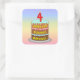 4th Birthday: Fun Cake and Candle + Custom Name Square Sticker