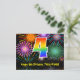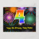 4th Birthday – Fun Fireworks Pattern + Rainbow 4 Postcard