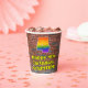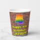 This vibrant and exciting urban street art and graffiti inspired birthday paper cup design features a large number “4” with a colourful rainbow spectrum gradient inspired pattern, along with the message “Happy 4th Birthday,”, and a customisable name. The background features a brick wall pattern. Vibrant, colourful paper cups like this might be fun to have at a birthday celebration/party being held in celebration of somebody’s fourth birthday. [~Z0000543]