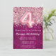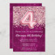 4th Birthday Invitation Girly Magenta Pink Glitter