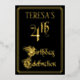The front of this elegant, fancy, foil fourth birthday celebration/party invitation design features the message “4th Birthday Celebration” in opulent script-style text. It also features an editable name. The background of the front is coloured black by default (although it can be customised to a different colour). The back features personalised details about the event, such as the date, time, location, and any other information that may be relevant. Luxurious, opulent, customisable invitations like these might be used to invite guests to a birthday celebration/party being held in celebration of somebody’s fourth birthday. [~Z0000589]