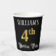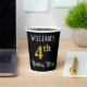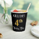This luxurious and fancy birthday paper cup design features an editable name and the message “4th Birthday Party”. The large number “4th” has a faux/imitation gold-inspired coloring pattern, the words “Birthday Party” are in elegant script-style text, and the background is colored black by default (although it can be customized). Elegant, ornate paper cups like this might be useful to have at a birthday party/celebration being held in celebration of somebody’s 4th birthday. [~Z0000567]