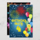 A fun 4th birthday party invitation with happy colours, balloons and fireworks. See the whole range of invitations and cards in my store.
