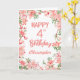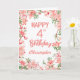 4th Birthday Pink Peach Peonies Watercolor Floral Birthday Card. For further customisation, please click the "Customise it" button and use our design tool to modify this template.