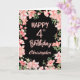 4th Birthday Pink Peach Watercolor Floral Black Card