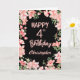 4th Birthday Pink Peach Watercolor Floral Black Birthday Card. For further customisation, please click the "Customise it" button and use our design tool to modify this template.