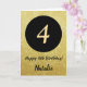 4th Happy Birthday Black and Gold Glitter Card with personalised name. For further customisation, please click the "Customise it" button and use our design tool to modify this template.