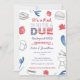 It's a Red White and Due Couples or Daddy Baby Shower! A fun invitation design for a casual cookout-type baby shower, particularly suitable for an event around a national holiday eg 4th July.