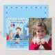 Invite your guests to your girl's Fourth of July Birthday Party with this cute original illustration! Use your best photo to make it extra beautiful. It's bright full and colourful! This Independence Day Birthday Party invitation is easily customised for your event by adding your details. In the front, it features a girl with an American flag next to the Statue of Liberty. She's wearing a t-shirt with red and white stripes. On the back of this invitation, there's a simple frame of stars. It's ideal for a girl born on this historical date and a Fourth of July-themed party.