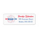 Red White And Due. A red, white and blue return address label design for you to personalize with your name and address. The text is customizable. You can change the font, font color, font size, letter spacing, line spacing, color of the fireworks graphic and reposition the text using the Design Tool.