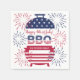 Modern red, white, and navy blue Happy 4th of July patriotic family barbecue personalised paper napkins with stars, stripes, fireworks, and American flag style lettering.