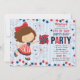 Cute, modern July 4th themed birthday party for kids. Red, dark and light blue design with stars, stripes and fireworks. Illustrated with a cute brunette girl holding a wind wheel. Create your own birthday invitation! Some elements by Zenware Designs @ Mygrafico. ***PLEASE NOTE that if you change the font or size of the font, it may alter how your invitation prints. It will print the way you see it on your monitor. I will not see your card once you order it, and Zazzle will NOT edit anything (typos, alignment, etc.). Shown here in Basic Paper