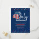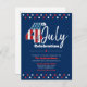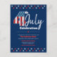 Get ready to celebrate our country in style when you send out these striking, graphic, patriotic, personalised, Fourth of July Independence Day party postcard invitations. Bold country, rustic “4” American flag, white and red typography and tiny stars overlay a navy blue background. Customise with all your party information. Sure to generate excitement for your big summer event!