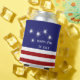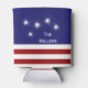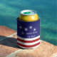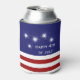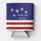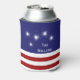 This fun can cooler is decorated with a fireworks and red and white stripes on a patriotic blue background. It is further enhanced with the saying Happy 4th of July and the family name on the back, which is easy to customise or delete if preferred.