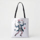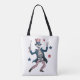 Bring patriotic fun to your everyday look with this dancing skeleton tote bag. Featuring a lively skeleton dressed in red, white, and blue attire, complete with a stylish cane, this design is full of personality and movement. Perfect for showing off your quirky side, celebrating American pride, or adding a playful touch to any outfit, this tote is as eye-catching as it is practical.