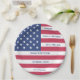 Beautiful American flag paper plate with customisable text celebration your reunion, party or event. Edit all text yourself when ordering.