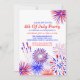 This fun and festive 4th of July party custom invitation card features red and blue fireworks and a red chevron zigzag pattern on the back of the card. Easily customise all text on the July 4 independence day card by changing the text size, text colour and font style can be changed to fit your event. Design by The Burlap Frog.