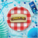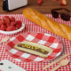 Hot dog on red and white buffalo plaid for 4th of July BBQ party.