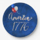 Holiday sparkler and balloons with America text on blue leather background for 4th of July party.