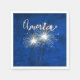 Holiday sparkler with America text on blue leather background for 4th of July party.