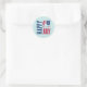 4th Of July Party Cute USA American Flag Heart Classic Round Sticker! Features cute distressed looking American Flag hearts to make up a fun red, white, and blue image! Customise the colours of the background and fonts if you'd like! Celebrate the stars and stripes with this summer party theme.
