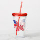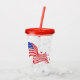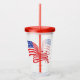 This acrylic tumbler with it 's own lid and straw has an image of the American flag with stars over a clear tumbler. Lid and straw shown in red. Choose your colour lid /straw set.