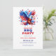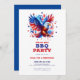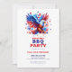 Patriotic bold eagle with American flag colours, stars, and stripes 4th of July BBQ party invitation.