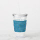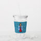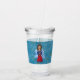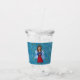 This acrylic drink tumbler with straw and lid has a 4th of July patriotic angel in a red, white and blue dress with white stars holding the American flag on a blue background with little gold stars.