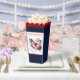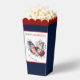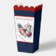 Popcorn boxes with an American Flag butterfly, flowers, and fireworks in national colours. Elegant design with a patriotic theme on the dark blue background. Easily personalise the text or leave it blank. - Kate Eden Art