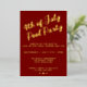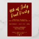 An elegant 4th of July pool party invitation. Featuring a real raised foil texture for a luxury feel on a dark red background. With a standout script calligraphy heading. Also features a stars embellishment.