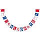4th of July Red White And Blue Celebrate Party Bunting Flags makes great decorations for Independence Day. Designed with the text "Celebrate" on red, white and blue colours. Use to hang over your party food table or an entryway.