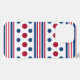 This phone case has a fun patriotic design featuring red, white and blue stripes and dots. Protect your phone and show your patriotism at the same time with this simplistic yet fun cover.