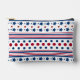 This accessory pouch has a fun design for the 4th of July featuring red, white and blue stars, stripes and dots. Use this patriotic pouch as a makeup bag, toiletry bag, travel kit, pencil case and more.