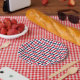 4th of July red white blue patriotic squared grid party Paper Plates
