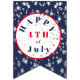 4th of July flag bunting with a red white and blue background with Silver stars.