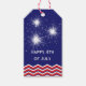 Sparkly fireworks light up this red, white and blue chevron sparkler holder, that can easily be tied to a couple of sparklers. Scroll down to see coordinating party invitations.