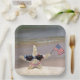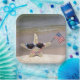 Starfish with flag sunglasses and bikini in beach sand holding an American flag for 4th of July Party