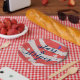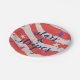 Make your 4th of July party more festive with these patriotic stars and stripes paper plates. The font and colour of the text can be changed to fit your preference. Happy Fourth of July!