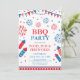 4th of July festive barbecue party invitation with border frame, flags, and fireworks