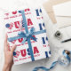 I love USA custom text Blue and Red Wrapping Paper. The text says "to the moon and back" as an example but the text is totally customisable change it and add your own text.
