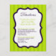 This 4x5 Sized Lime Green & Purple Stripe Ashley Reception and Ceremony Directions Card is perfect for any couple to place inside of their wedding invitations for their recipients to have directions to the ceremony and to where the reception is being held. These do come with standard white envelopes but you can just discard these since your guests will not need these.