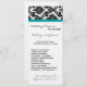 4x9 Wedding Program - Black Damask Teal Turquoise Programme
